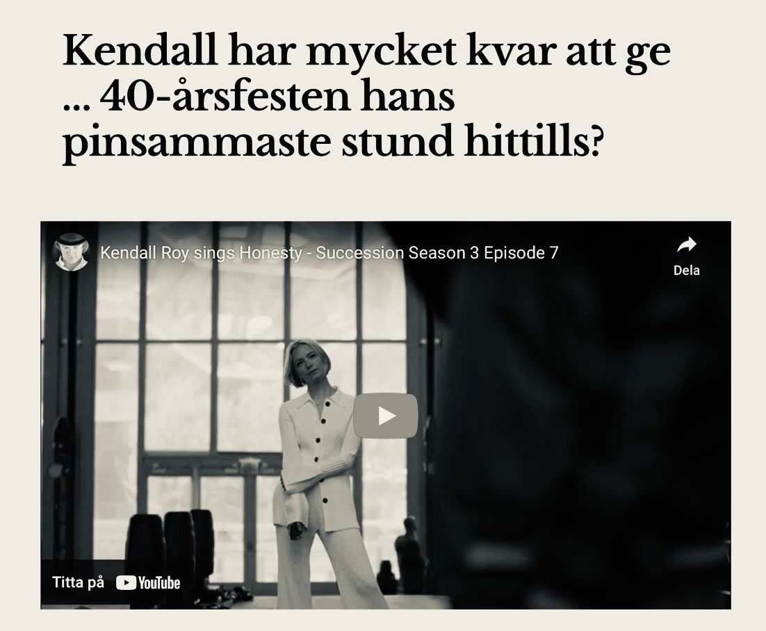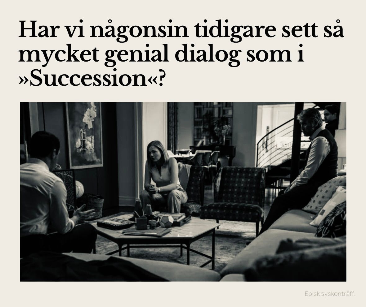 Jag har bara sett det första avsnittet och avstått efterföljande tre, som erbjudits kritiker. Jag vill se och vörda varje episod i klassiskt tablåtempo, ett i veckan, för att smälta intrycken långsamt och i sällskap med andra diskussionssugna på nätet. Då blir också Succession-säsongen längre, fäster mer. När jag förra säsongen skippade förhandstittarna blev jag mer benägen att fördjupa mig i serien här i nyhetsbrevet vecka för vecka (länkar):