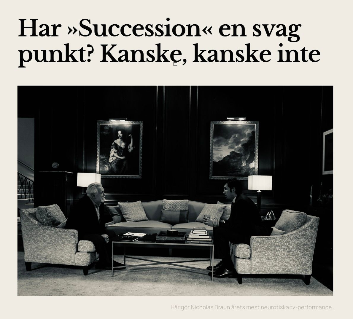 Märkligt, med tanke på hur många andra serier jag ser, och ser fram emot, varav många är lika bra som Succession (vilken jag rankade som årets fjärde bästa serie efter senaste säsongen), men det är med tv som med fotboll, man behöver ett VM. Och att Succession ska ta slut efter att ha varit hela världens stora event-serie känns extra jobbigt med tanke på att det inte är så ofta världs-event-serien är så vuxen och intelligent. Ska vi kastas tillbaka i något pajigt Game of Thrones-mörker nu?