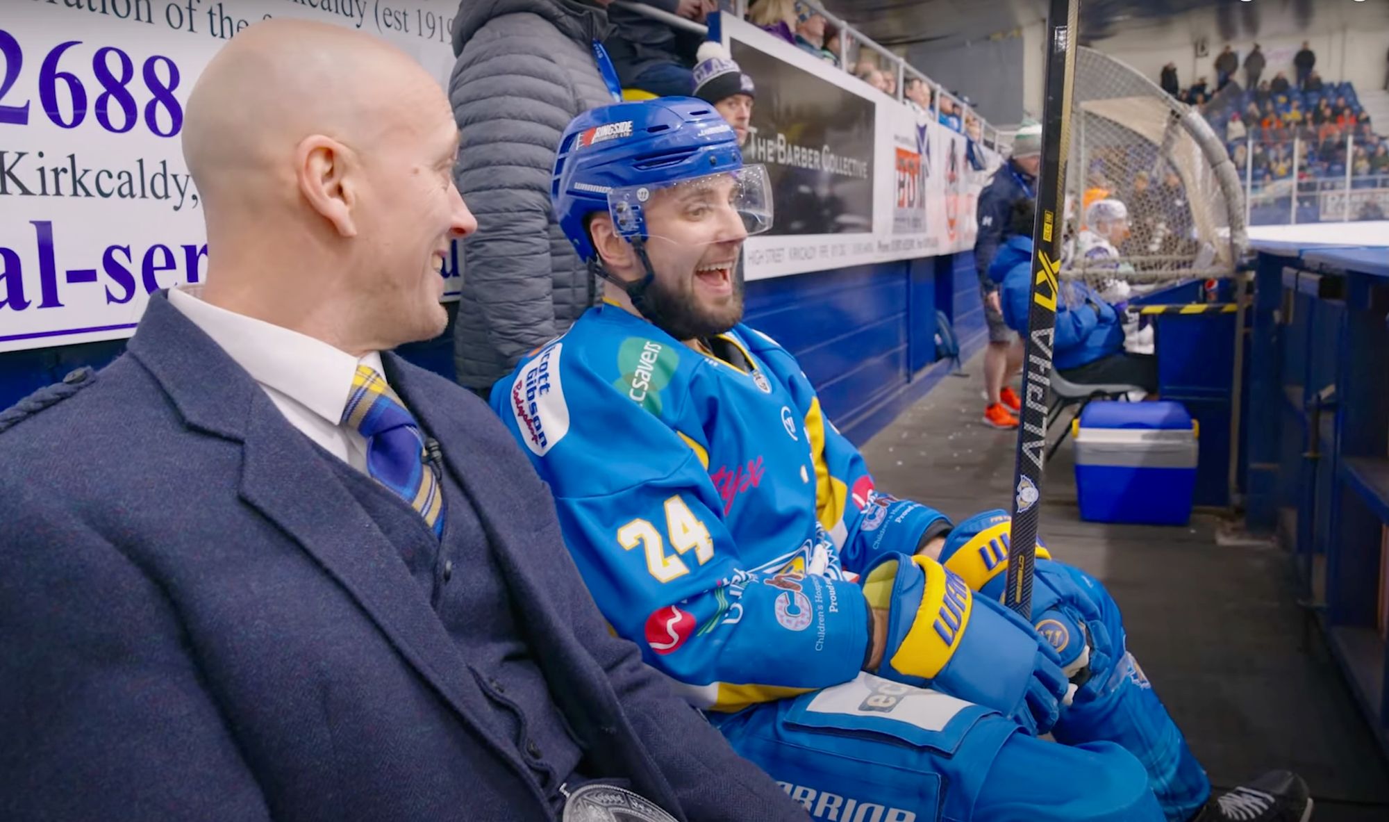 Ah, nu fick vi se utvisningsbåset in action! Förlåt, utvisningsstolen. Som jag skrev om förra veckan efter det första av två Fimpens resa Europa-episoder som besöker Skottland. I veckans fortsättning slog sig Christian »Fimpen« Eklund ner på botgörarbänken (det vill säga kontorsstolen bredvid) med utvisade Fife-proffset Janne Kivilahti, mitt under match (Kivilahti spelade för övrigt i Oskarshamn och Karlskrona i Hockeyallsvenskan för en bunt år sedan).