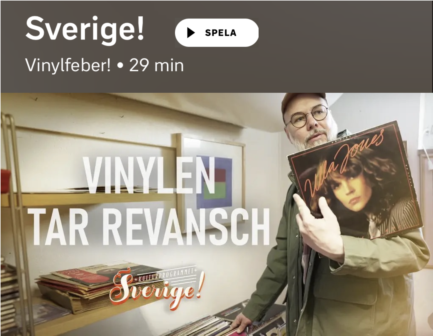 Tommie Jönsson, känd för podden DJ 50 Spänn, är alldeles rörande nördig och rolig i veckans Sverige! på SVT som högst oväntat bara handlar om vinylskivor: