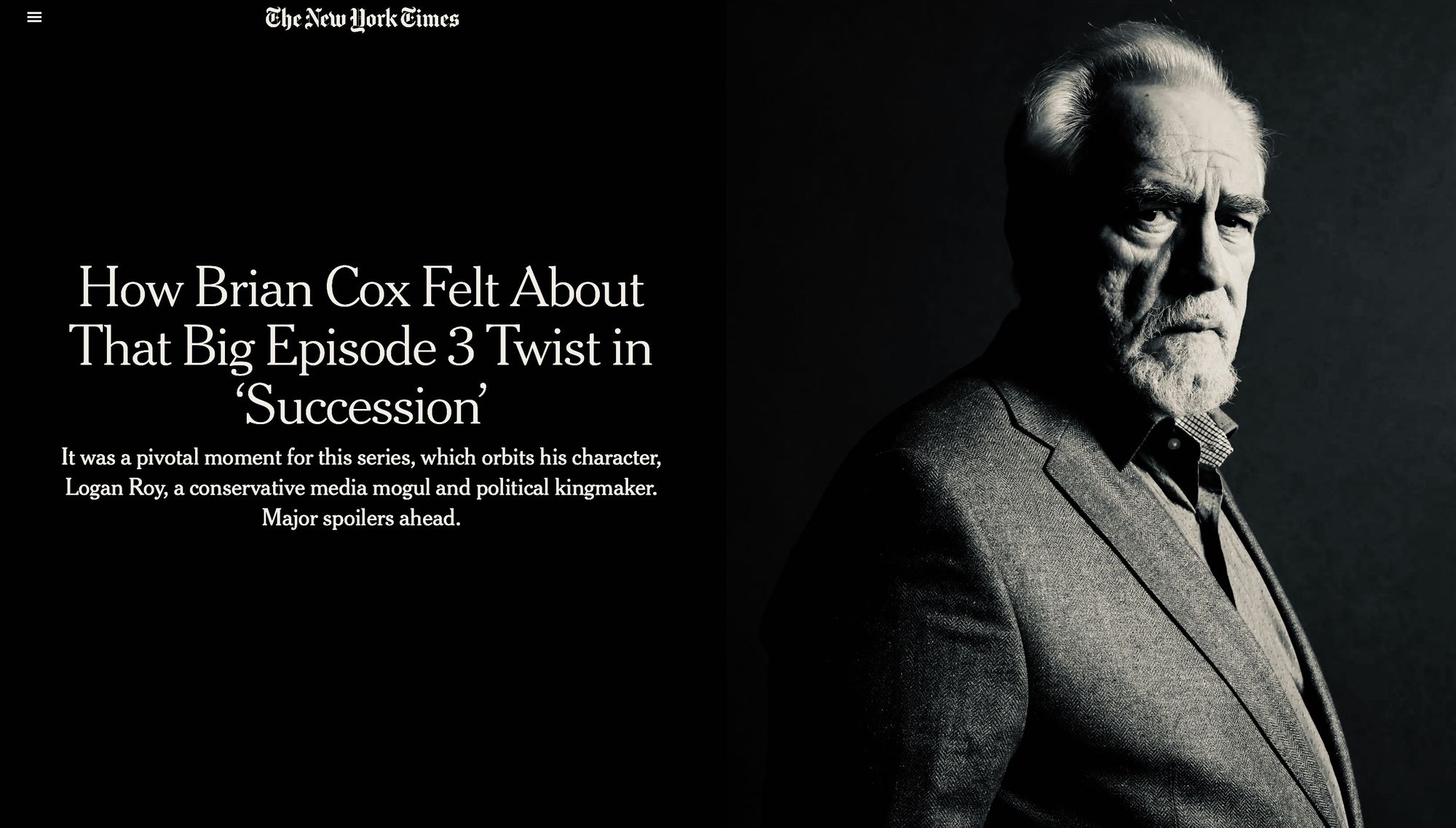 Så många har skrivit så mycket om det överväldigande tredje avsnittet av Succession att jag lika gärna kan vara kortfattad. Ingen behöver övertygas. Alla har sett, alla har fattat. Hypen är ju ännu större än efter det ikoniska tredje avsnittet av The Last of Us … Och det gläder mig enormt, detta att världens största och viktigaste tv-serie i år är ett genuint vuxendrama helt utan drakar, superhjältar och franchise-zombies.