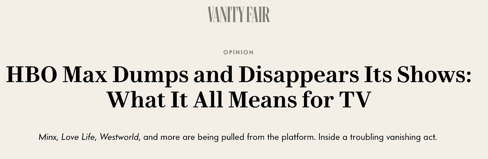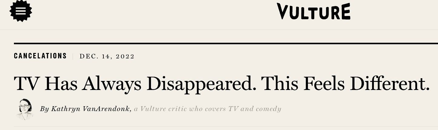 Tyvärr går hela marknaden åt samma håll som Disney+. HBO Max, som förvandlas till enbart »Max« nästa år, släpar numera efter med svenska visningar även när det gäller egna originalserier. Issa Raes suveräna Rap Sh!t från förra sommaren, till exempel, fick inte svensk premiär förrän i torsdags. I den mån HBO fortfarande går i bräschen för någon marknadsutveckling så är den numera i negativ riktning. Förra året inte bara stoppade bolaget flertalet av sina egna internationella serier, man rentav raderade dem ur katalogen för att kunna skriva av kostnaderna i bokslutet. Detta ser nu ut att kunna bli branschstandard, delvis som svar på den stora manusförfattar- och skådespelarstrejken: om streamingtjänsterna i slutändan kommer att behöva betala mer för tv-produktioner så kommer de sannolikt att försöka ta igen den kosntadsökningen genom att slimma ner sina arkiv och betala ut desto mindre till upphovspersoner och skådespelare i äldre serier.