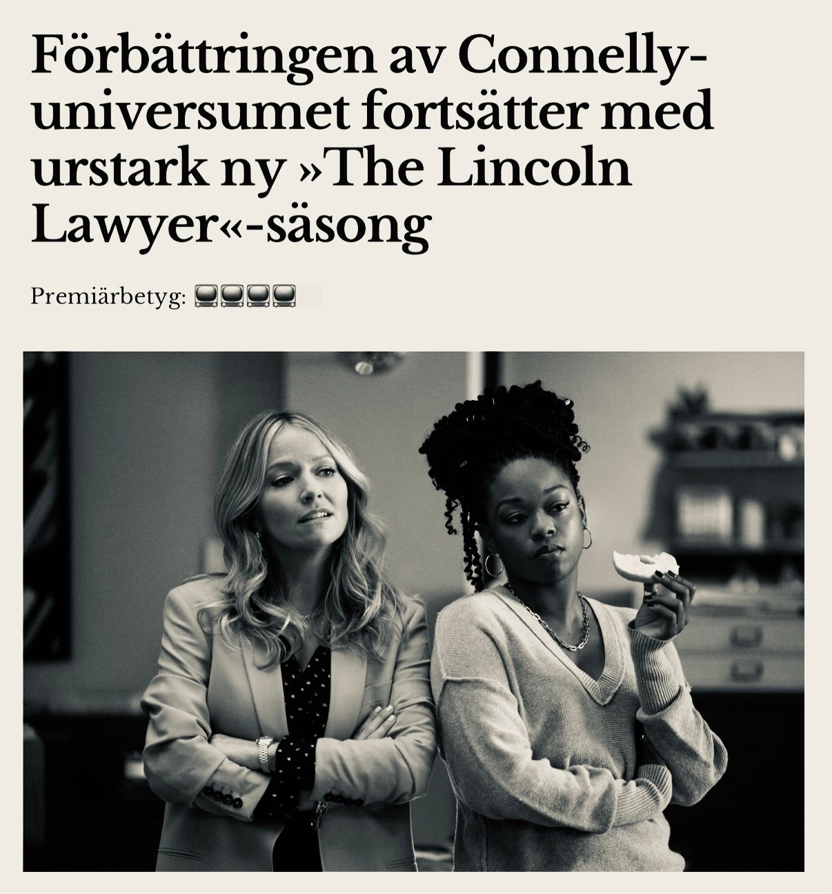 Jag har redan skrivit massor om Netflix serieversion av The Lincoln Lawyer, och förklarat varför jag gillar den så mycket, och när jag recenserade den första delen av säsong 2 höll jag hårt fast vid mitt översvallande säsong 1-omdöme: