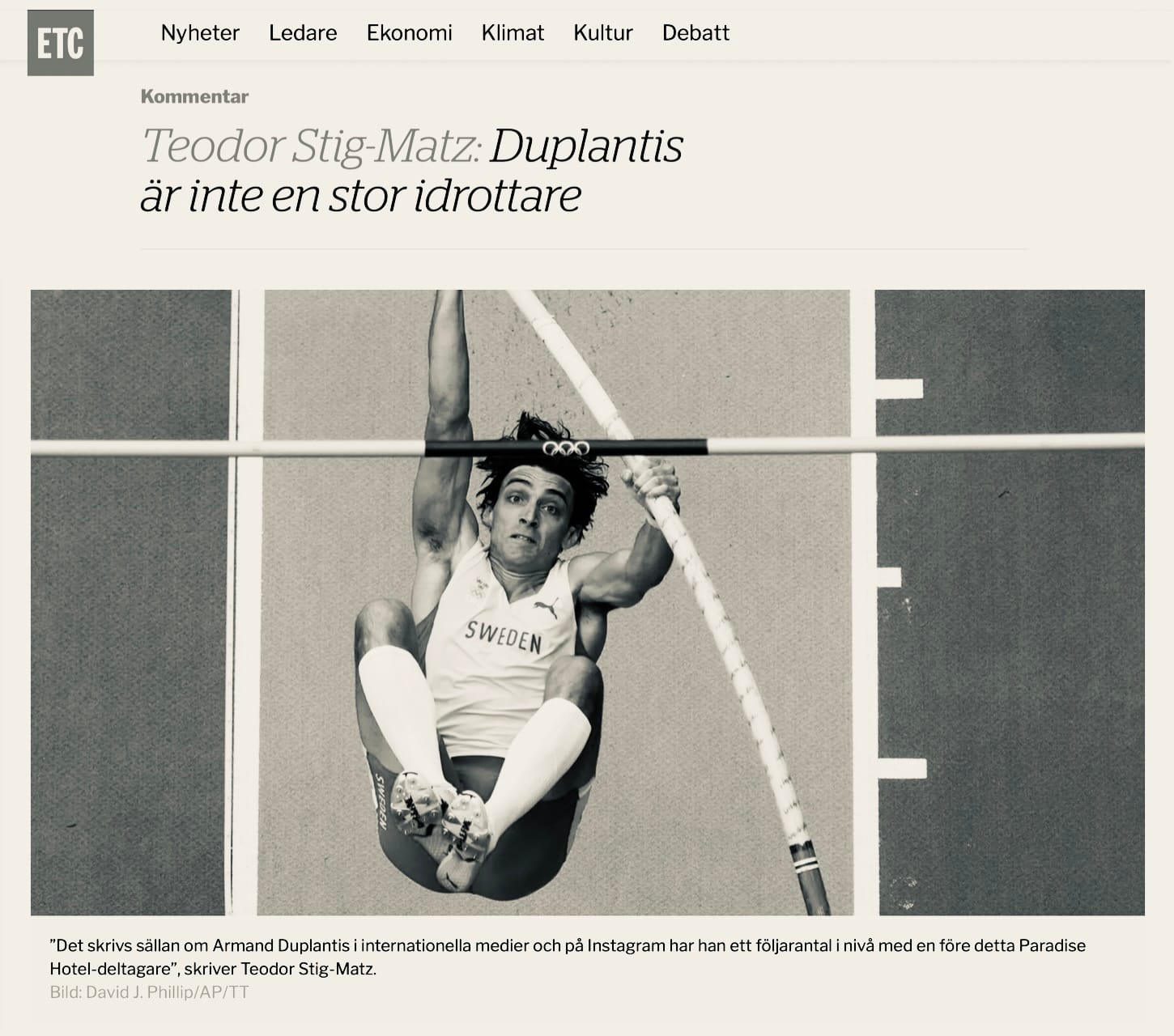 Jag hade tänkt skriva en lite längre grej om den bisarra krönikan om Armand Duplantis i ETC …