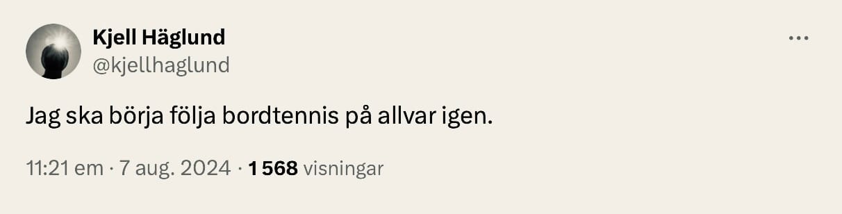 Satt på Xitter och slentriankommenterade lagsemin i bordtennis i onsdags och efter några tweets om Tomokazu Harimotos tics med byxorna och Kristian Karlssons humleflyktsomöjliga explosivitet (jag menar, kroppshyddan börjar ju likna J-O Waldner den äldre) bara försvann jag i en timme. Vad hände? Det är nästan så jag måste göra som Kristian Karlsson när han kommenterar den här bilden …