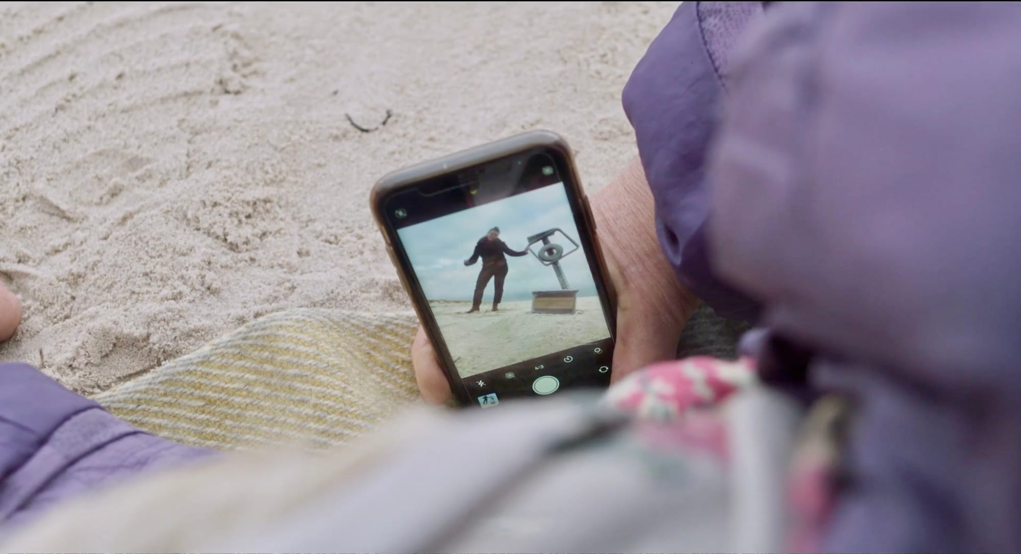 Praxis är att man lägger in bilder av sms-konversationer digitalt i efterarbetet. Men för Lisa Linnertorp måste de vara på riktigt. De ska skrivas framför filmkameran. Lisa berättar om tagningen ovan: