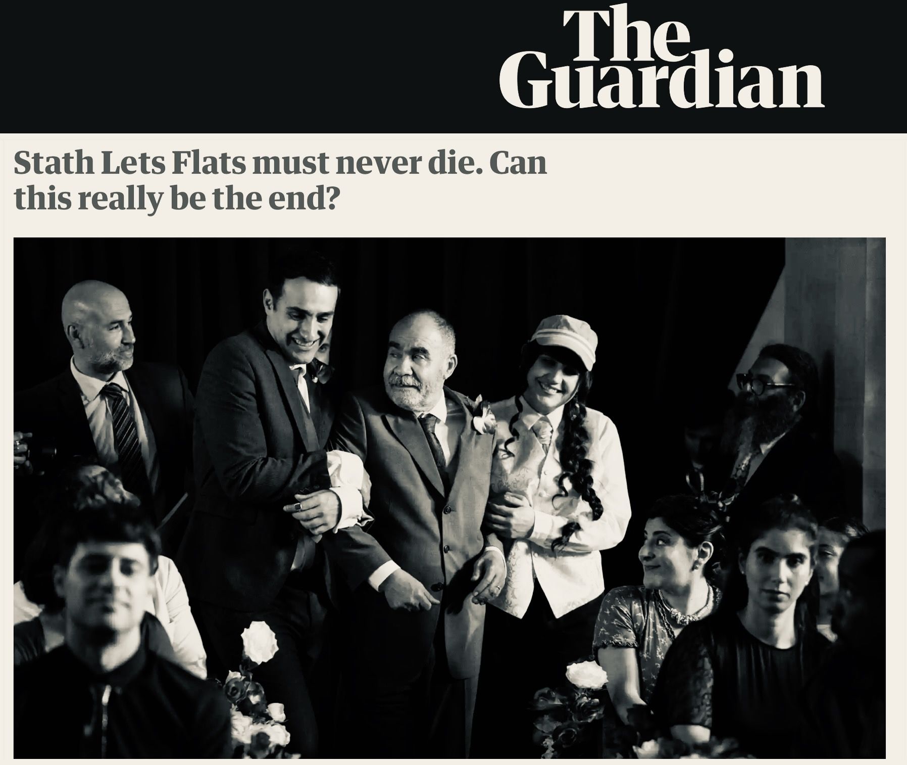 Stath Lets Flats är ett auteur-verk med Demetriou som serieskapare, manusförfattare och huvudrollsinnehavare – men med alla fyra nämnda Year Friends-medlemmar i bärande roller. Och jag har svårt att inte se den märkvärdiga humorn som en kollaborativ fortsättning på vad North London-kollektivet skapade med Vimeo-serien. Premissen är dock väsensskild – ett slags evolutionerat The Office där traditionella sitcom-manér marineras i subkulturell absurdism, där samtliga rollgestalter (utom personerna som då och då är spekulanter på hyreslägenheter) är direkt korkade, och där subkulturen egentligen är två: dels lägenhetsuthyrningsbranschen (som i verkligheten utvecklade ett passionerat har mot serien i hemlandet …), dels Londons grek-cypriotiska community (som bråkade internt om huruvida serien bör älskas eller hatas).