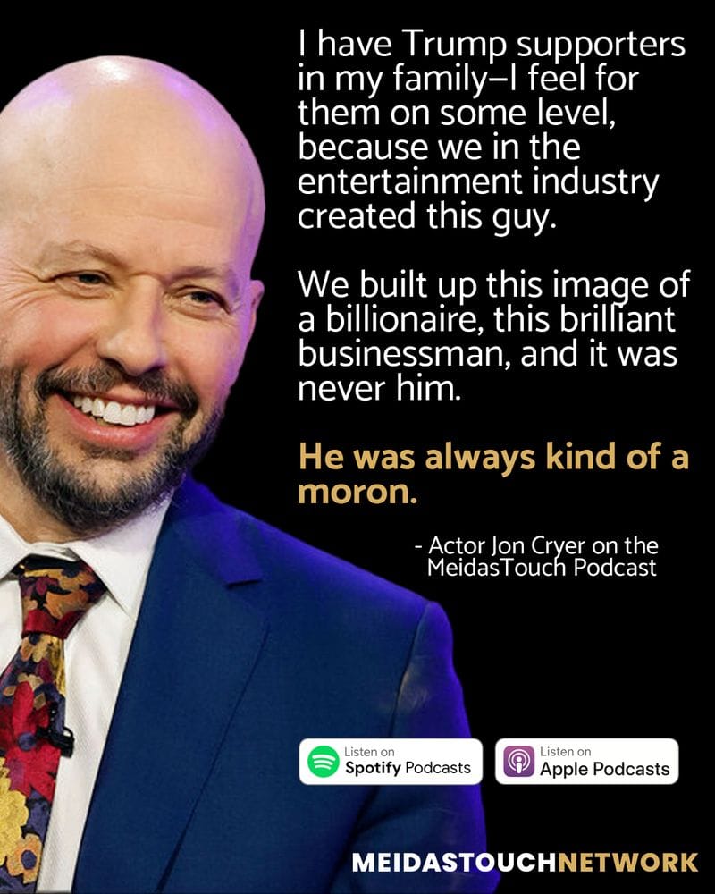 Gamla Pretty in Pink- och Two and a Half Men-stjärnan Jon Cryer har varit en stabil anti-MAGA-aktivist i flera år nu och var i vanlig ordning oerhört vältalig och tänkvärd när han gästade The Meidas Touch Podcast häromdagen. Själv har jag tonar ner USA-politiken här i nyhetsbrevet de senaste veckorna, men nu blir det lite igen, längst ner i brevet, efter att Jon Cryer påminde om den allra viktigaste aspekten av Trumpismen. Nämligen det som citeras här: