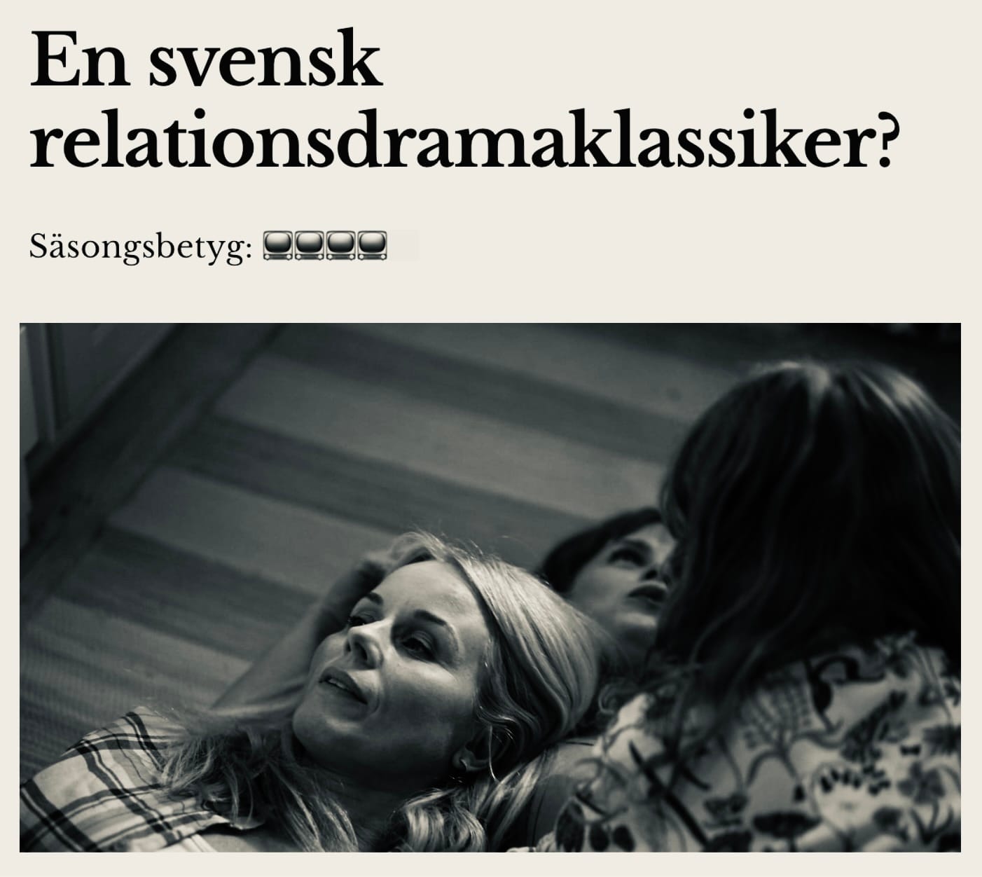 Fortsatt innehåll bakom betalvägg – jag recenserar Queen of Fucking Everything, Nine Perfect Strangers, Furia, Rebound och Styx, och Hynek Pallas hyllar samtidsskildringen i Andor, m.m. Avslutar som alltid med mitt soundtrack till tv-veckan som Spotify-spellista. Bli betalande medlem!