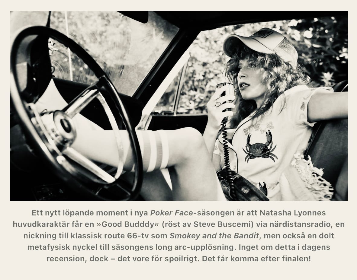 När jag recenserade den nya Poker Face-säsongen i juli ville jag inte mer än antyda hur bra avslutningen av säsongen skulle bli, eftersom känslan av överraskning lätt hade kunnat spoilas … så jag nämnde det bara som hastigast i en bildtext: