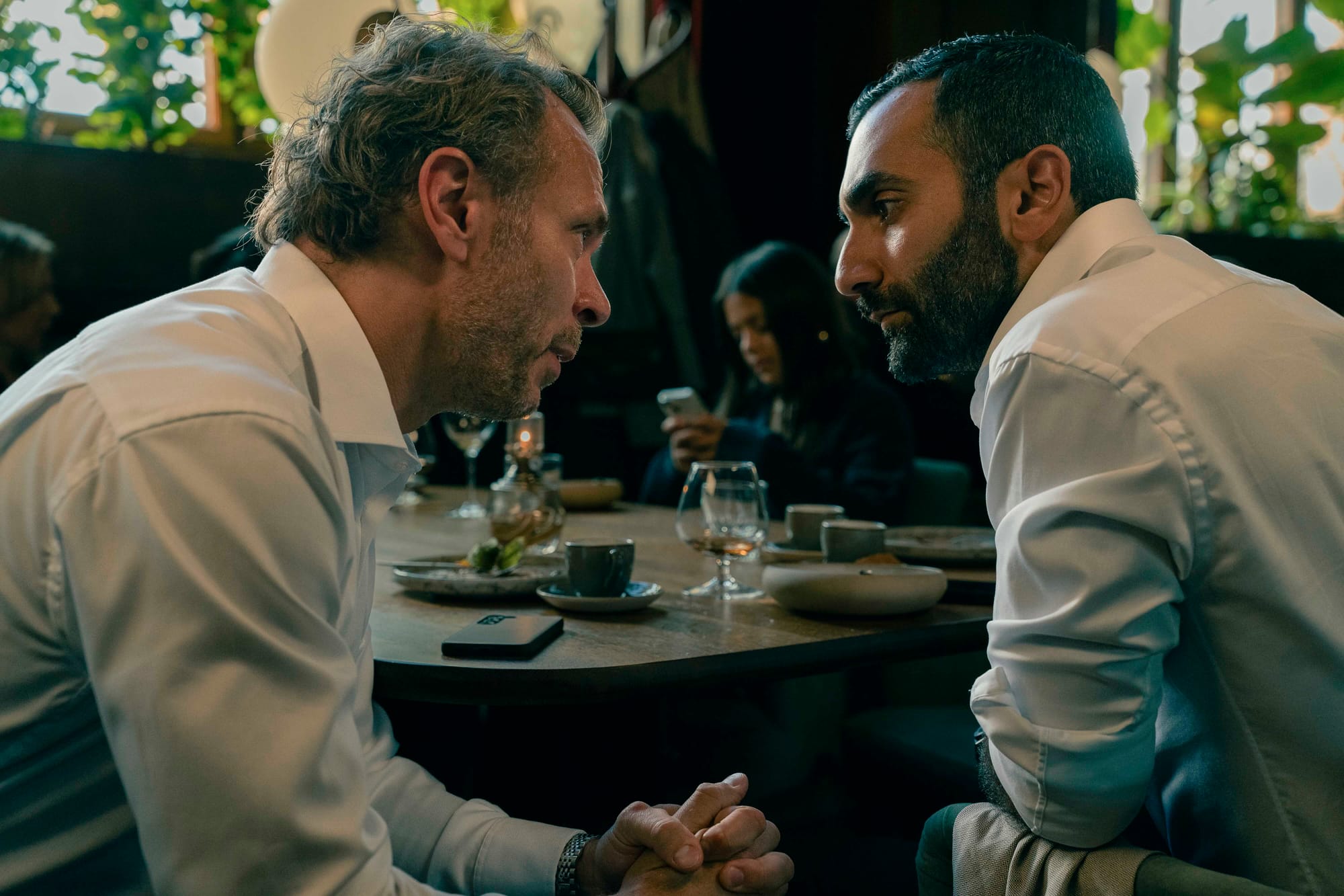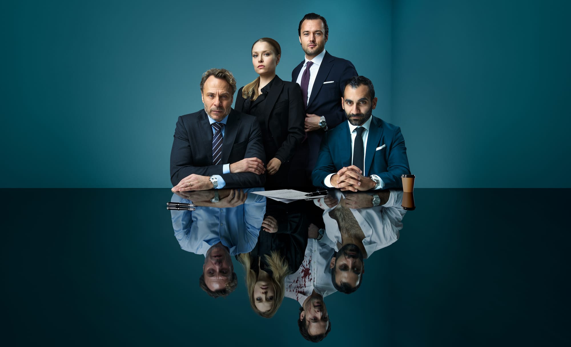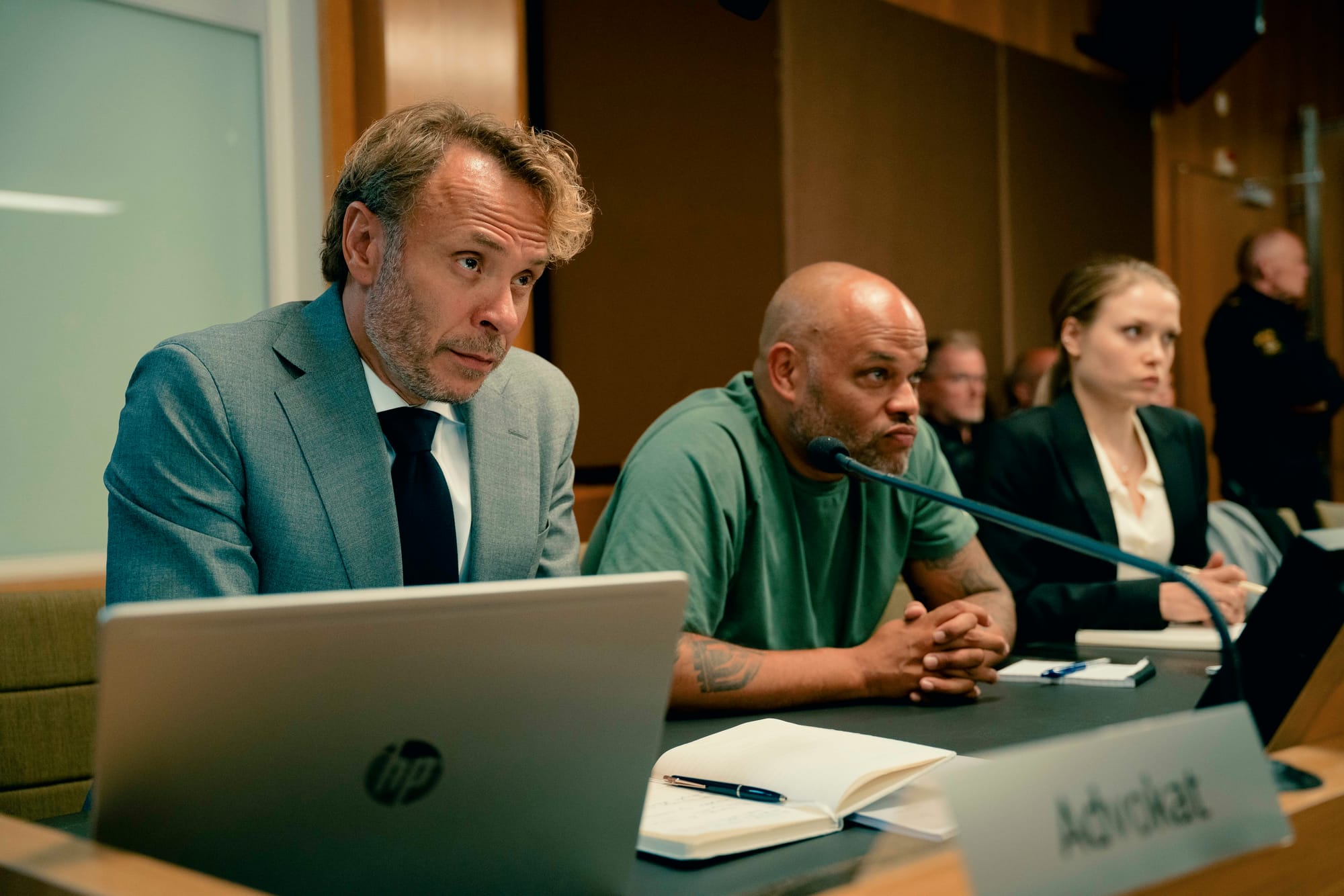Samtidigt – ja, det finns många »samtidigt« i den här serien – läggs ett intrikat pussel av relationer mellan karaktärerna, inte minst äktenskapsskildringar som får arketyper att leva framför våra ögon. Här ingår många sexscener, som inte för en enda spekulativ sekund frångår den större (eller mindre) berättelsen, där hela ensemblen blir ett med sina karaktärer – Björn Bengtsson och Arvin Kananian som delägarna, Michaela Thorsén och Anitha Clemence som deras fruar, Vivianne Treschow som åklagaren som har en destruktiv affär med Arvins karaktär, Anders Jansson som veteranen som luffar runt på kontoret, nykter alkoholist, startat en podd … alla är så på kornet äkta, uppbyggda av ett myller allmänmänskliga och snävt detaljerade, stora och subliminala, iakttagelser. Även de mindre rollerna är guld som glimmar, från debuterande fritidsgårdsfyndet Seddik Radjai som tonårsskjutaren till Lisas bror Karl Linnertorp som härskarteknikbriljerande åklagare.