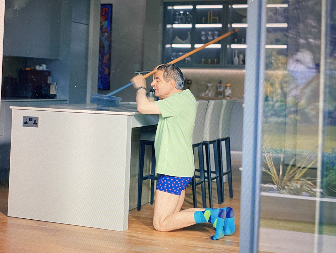 Och inte för att det, ur den synvinkeln, är något större fel på manuset heller – det är ju helt byggt kring Atkinsons komiska elasticitet. Typ »Mr Bean har fått in en humla innanför byxan« (ja, det blir en del runk-genans), eller »Mr Bean fattar inte hur man öppnar de sensorstyrda köksskåpen, men ett av dem öppnas när han står med ryggen mot och håller upp högerarmen i en båge, så för att öppna skåpluckorna under resten av serien ställer eller sätter han sig alltid med ryggen mot och armen upp i en båge« (faktiskt oemotståndligt roligt).
